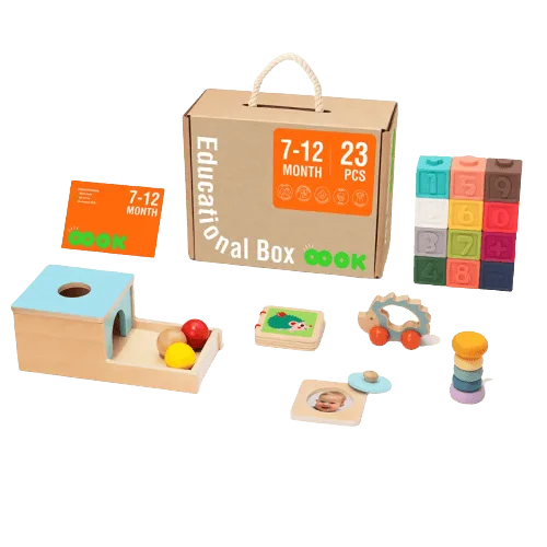 Eme 6 fő játékból, összességében 23 részből álló fejlesztő játékkészlet szett tökéletesen átgondolt játékelemek és játékok kombinációja, amely segíti a babák fejlődését 7-12 hónapos korukig.